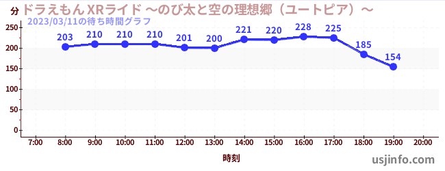• ドラえもん XRライド ~のび太と空の理想郷(ユートピア)~$B$N(B2023年03月11日の待ち時間