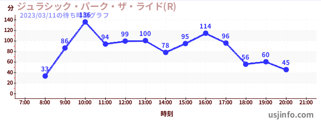 • ジュラシック・パーク・ザ・ライド(R)$B$N(B2023年03月11日の待ち時間