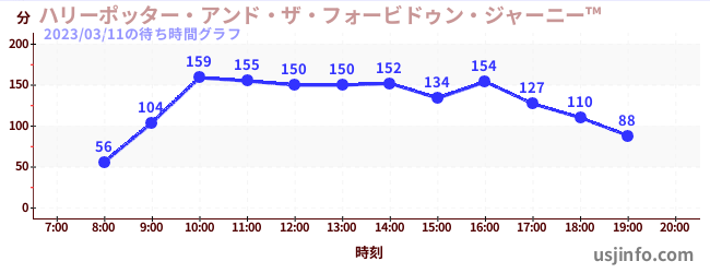 • ハリーポッター・アンド・ザ・フォービドゥン・ジャーニー™$B$N(B2023年03月11日の待ち時間