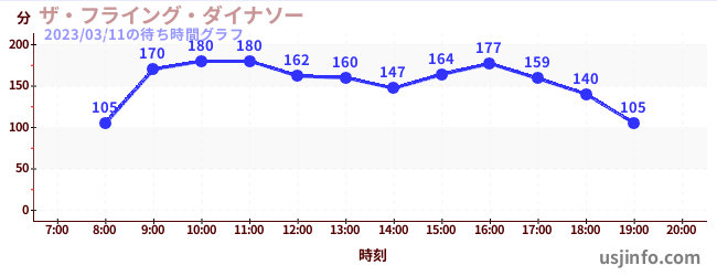 • ザ・フライング・ダイナソー$B$N(B2023年03月11日の待ち時間