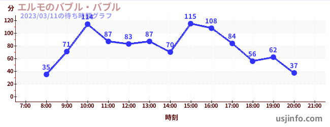 • エルモのバブル・バブル$B$N(B2023年03月11日の待ち時間