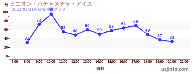 • ミニオン・ハチャメチャ・アイス$B$N(B2023年03月11日の待ち時間