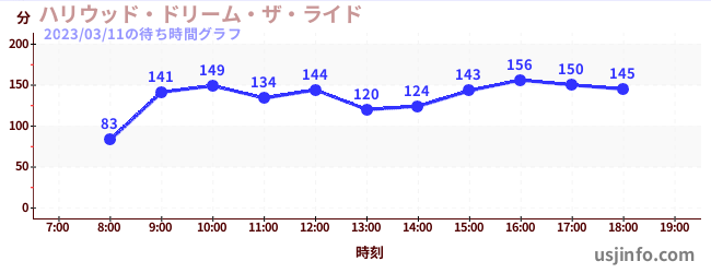 • ハリウッド・ドリーム・ザ・ライド$B$N(B2023年03月11日の待ち時間