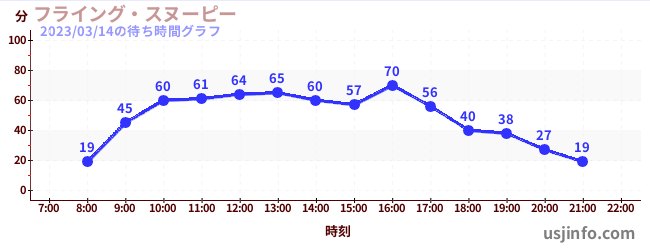 • フライング・スヌーピー$B$N(B2023年03月14日の待ち時間