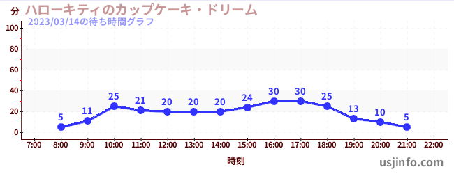 • ハローキティのカップケーキ・ドリーム$B$N(B2023年03月14日の待ち時間