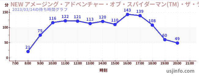 • NEW アメージング・アドベンチャー・オブ・スパイダーマン(TM)・ザ・ライド 4K3D$B$N(B2023年03月14日の待ち時間