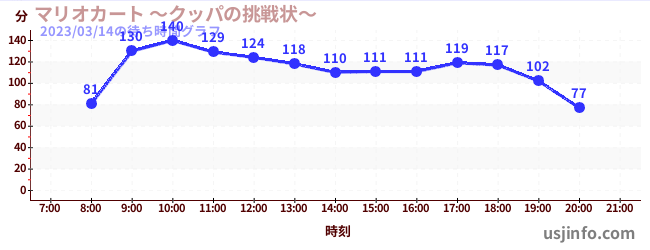 • マリオカート ~クッパの挑戦状~$B$N(B2023年03月14日の待ち時間
