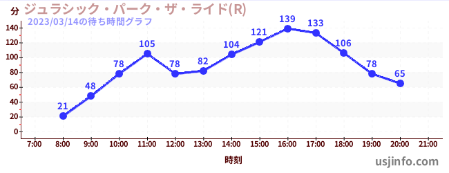 • ジョーズ(R)$B$N(B2023年03月14日の待ち時間