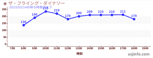 • ザ・フライング・ダイナソー$B$N(B2023年03月14日の待ち時間