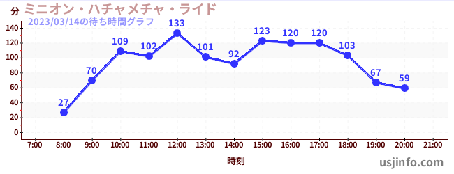 • ミニオン・ハチャメチャ・ライド$B$N(B2023年03月14日の待ち時間