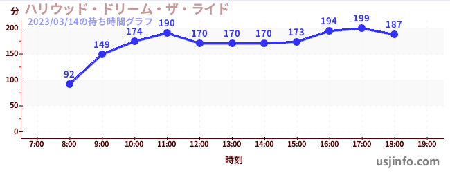 • ハリウッド・ドリーム・ザ・ライド$B$N(B2023年03月14日の待ち時間