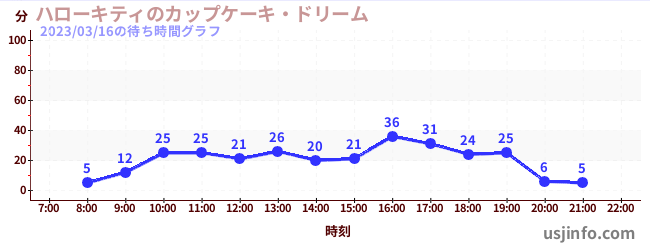 • ハローキティのカップケーキ・ドリーム$B$N(B2023年03月16日の待ち時間