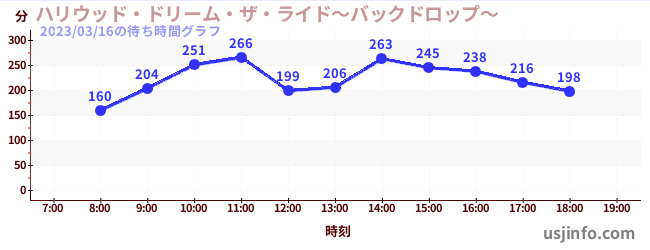 • ハリウッド・ドリーム・ザ・ライド〜バックドロップ〜$B$N(B2023年03月16日の待ち時間