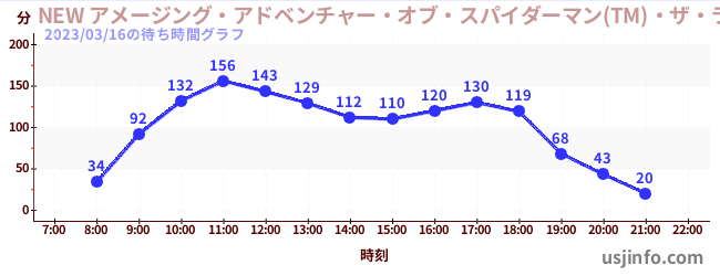 • NEW アメージング・アドベンチャー・オブ・スパイダーマン(TM)・ザ・ライド 4K3D$B$N(B2023年03月16日の待ち時間