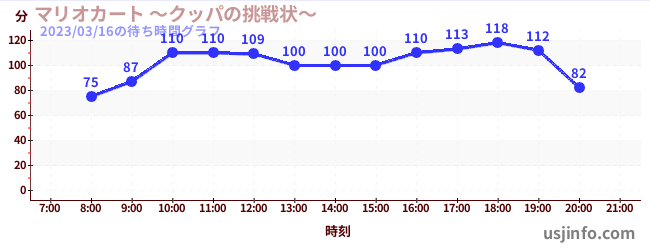 • マリオカート ~クッパの挑戦状~$B$N(B2023年03月16日の待ち時間