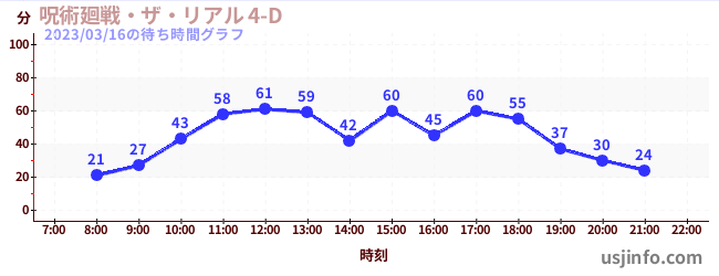 • 呪術廻戦・ザ・リアル 4-D$B$N(B2023年03月16日の待ち時間