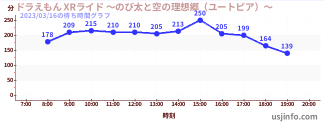 • ドラえもん XRライド ~のび太と空の理想郷(ユートピア)~$B$N(B2023年03月16日の待ち時間