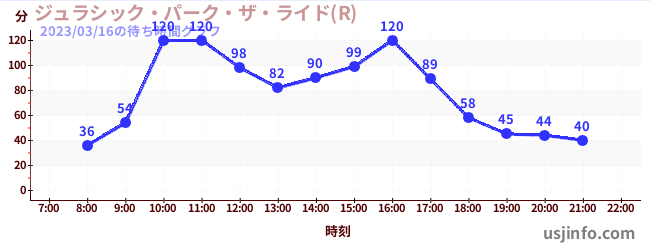 • ジュラシック・パーク・ザ・ライド(R)$B$N(B2023年03月16日の待ち時間