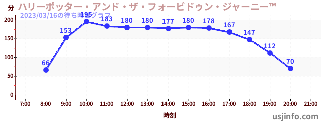 • ハリーポッター・アンド・ザ・フォービドゥン・ジャーニー™$B$N(B2023年03月16日の待ち時間