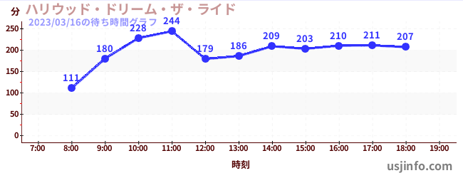 • ハリウッド・ドリーム・ザ・ライド$B$N(B2023年03月16日の待ち時間