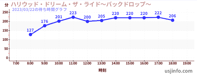 • ハリウッド・ドリーム・ザ・ライド〜バックドロップ〜$B$N(B2023年03月22日の待ち時間