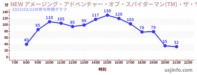 • NEW アメージング・アドベンチャー・オブ・スパイダーマン(TM)・ザ・ライド 4K3D$B$N(B2023年03月22日の待ち時間