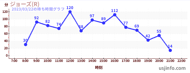 • ジョーズ(R)$B$N(B2023年03月22日の待ち時間