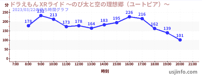 • ドラえもん XRライド ~のび太と空の理想郷(ユートピア)~$B$N(B2023年03月22日の待ち時間