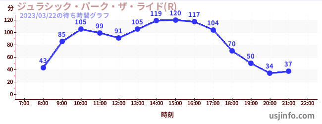 • ジュラシック・パーク・ザ・ライド(R)$B$N(B2023年03月22日の待ち時間