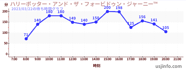 • ハリーポッター・アンド・ザ・フォービドゥン・ジャーニー™$B$N(B2023年03月22日の待ち時間