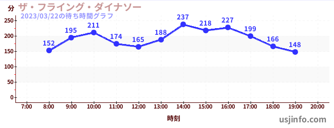 • ザ・フライング・ダイナソー$B$N(B2023年03月22日の待ち時間