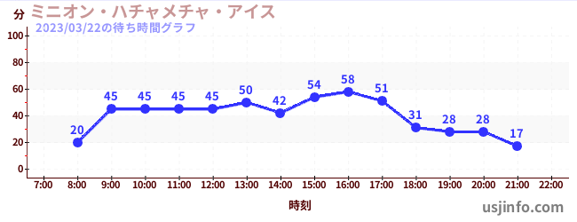 • ミニオン・ハチャメチャ・ライド$B$N(B2023年03月22日の待ち時間