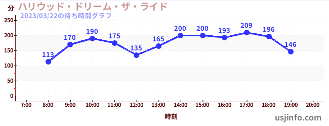 • ハリウッド・ドリーム・ザ・ライド$B$N(B2023年03月22日の待ち時間