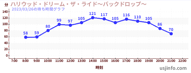 • ハリウッド・ドリーム・ザ・ライド〜バックドロップ〜$B$N(B2023年03月26日の待ち時間