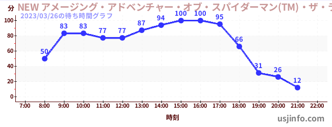 • NEW アメージング・アドベンチャー・オブ・スパイダーマン(TM)・ザ・ライド 4K3D$B$N(B2023年03月26日の待ち時間