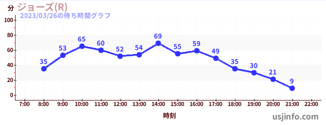 • ジョーズ(R)$B$N(B2023年03月26日の待ち時間