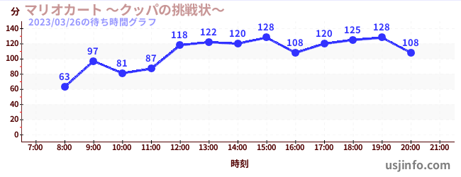 • マリオカート ~クッパの挑戦状~$B$N(B2023年03月26日の待ち時間