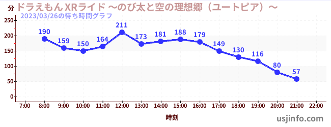• ドラえもん XRライド ~のび太と空の理想郷(ユートピア)~$B$N(B2023年03月26日の待ち時間