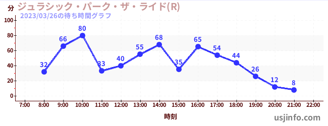 • ジュラシック・パーク・ザ・ライド(R)$B$N(B2023年03月26日の待ち時間