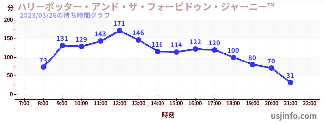 • ハリーポッター・アンド・ザ・フォービドゥン・ジャーニー™$B$N(B2023年03月26日の待ち時間