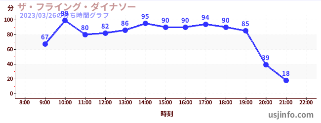 • ザ・フライング・ダイナソー$B$N(B2023年03月26日の待ち時間