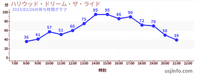 • ハリウッド・ドリーム・ザ・ライド$B$N(B2023年03月26日の待ち時間