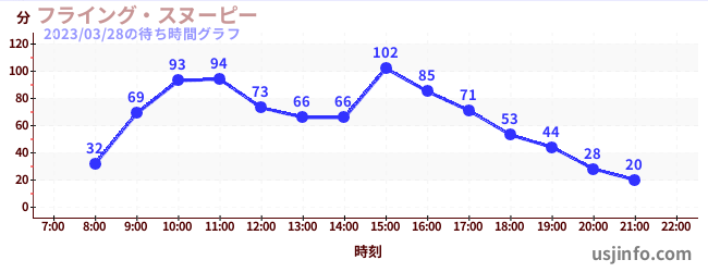 • フライング・スヌーピー$B$N(B2023年03月28日の待ち時間