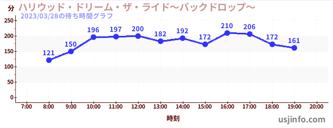 • ハリウッド・ドリーム・ザ・ライド〜バックドロップ〜$B$N(B2023年03月28日の待ち時間