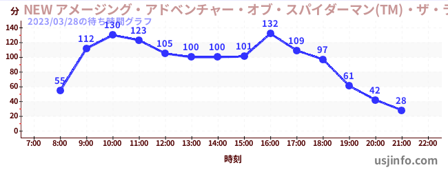 • NEW アメージング・アドベンチャー・オブ・スパイダーマン(TM)・ザ・ライド 4K3D$B$N(B2023年03月28日の待ち時間