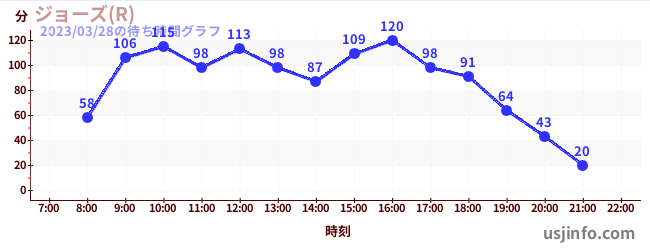 • ジョーズ(R)$B$N(B2023年03月28日の待ち時間