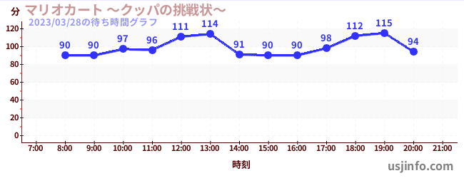 • マリオカート ~クッパの挑戦状~$B$N(B2023年03月28日の待ち時間