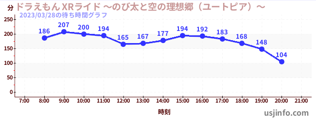 • ドラえもん XRライド ~のび太と空の理想郷(ユートピア)~$B$N(B2023年03月28日の待ち時間