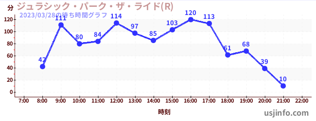 • ジュラシック・パーク・ザ・ライド(R)$B$N(B2023年03月28日の待ち時間