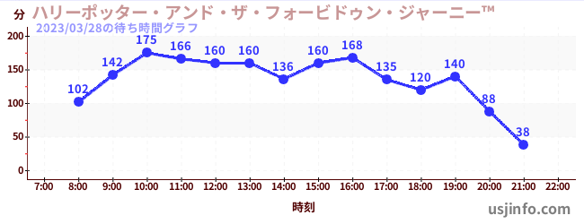• ハリーポッター・アンド・ザ・フォービドゥン・ジャーニー™$B$N(B2023年03月28日の待ち時間